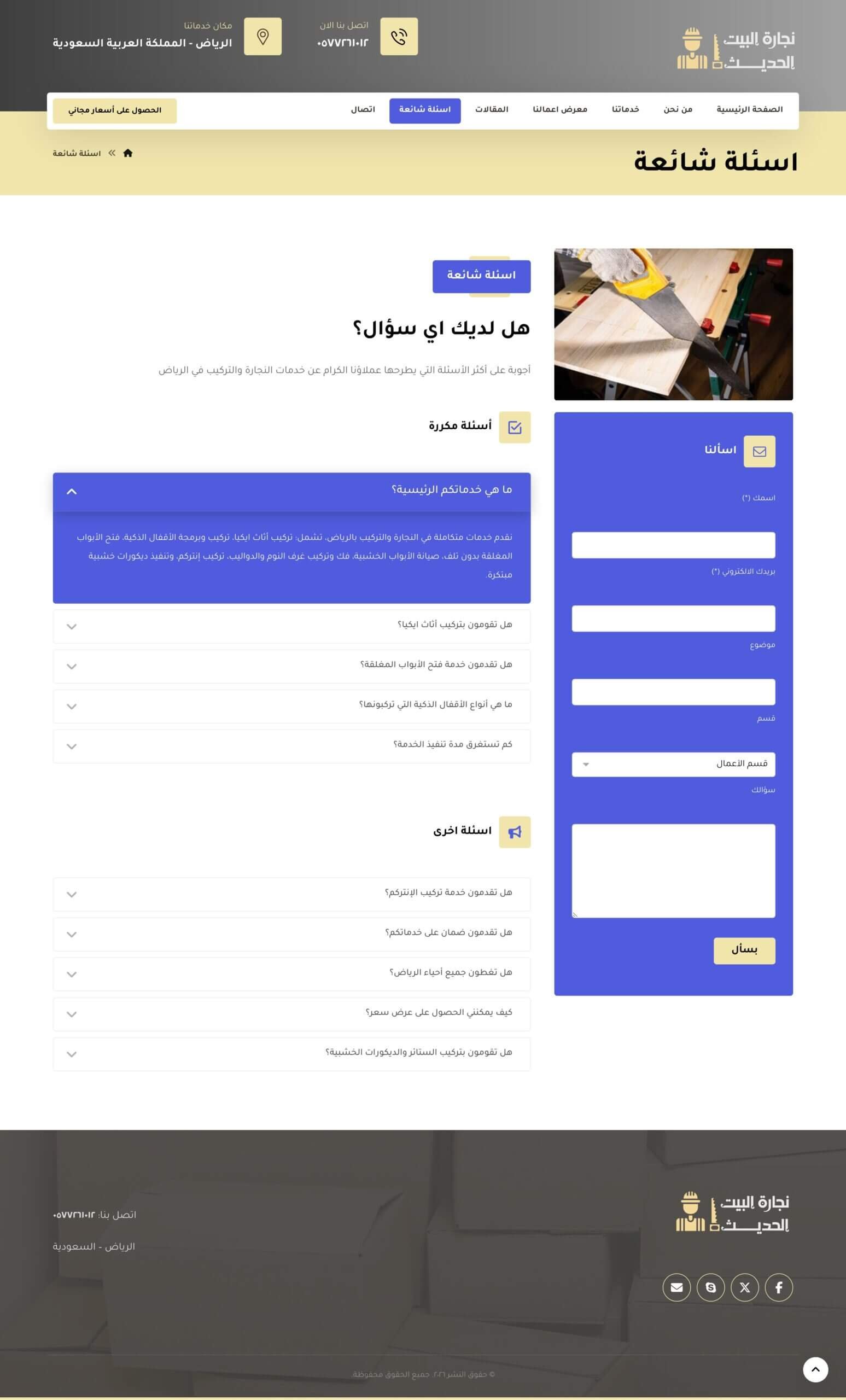 تصميم وتطوير موقع البيت الحديث لخدمات النجارة بالرياض بواجهة عصرية وسهلة الاستخدام.
